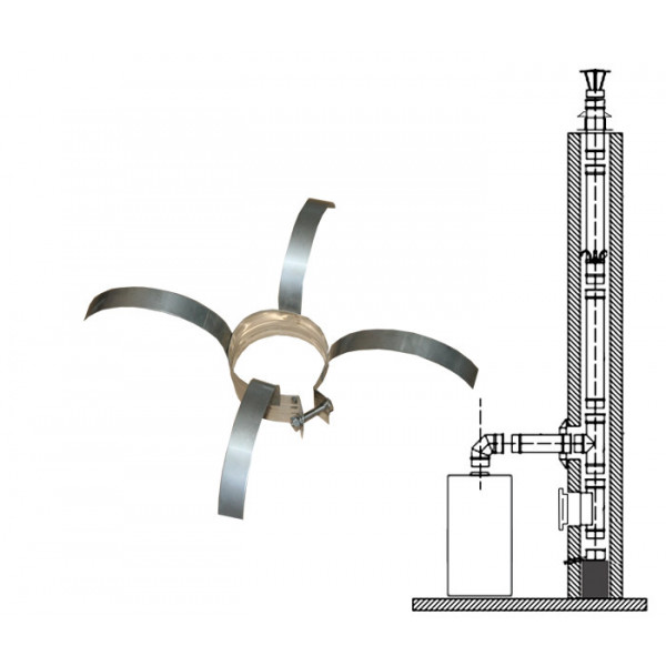 Středící objímka se využívá při vložkování komínů. Při větším průměru komínového tělesa umístíme na vložku tuto objímku a tím zajistíme že vložka zůstane umístěna uprostřed průduchu.