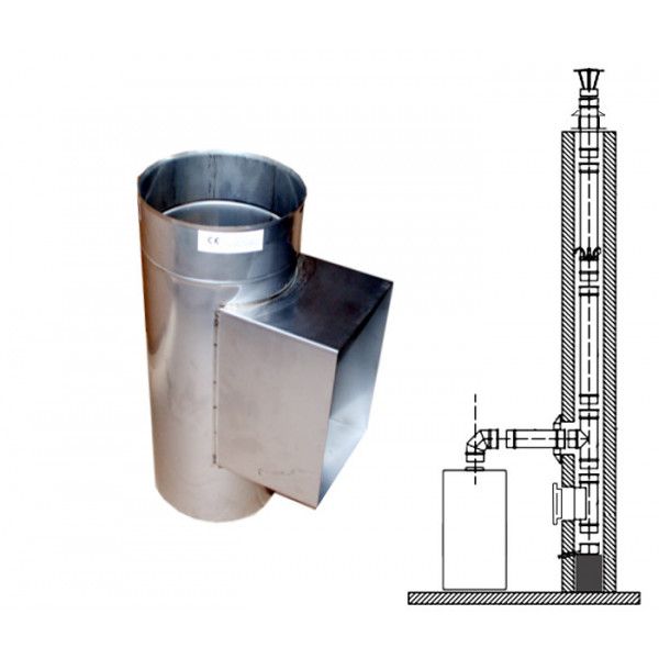 Dvířkový díl - čistící nebo také revizní. Součást komín. vložek, vhodných pro vložkování komínů, pro odvod spalin z topných zařízení na plyn, topný olej. Slouží k vybírání sazí.