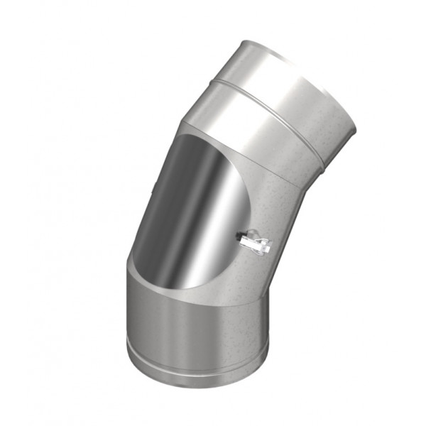 Nerezové koleno 60° s revizním otvorem vhodné jako napojovací díl ke spotřebičům nebo jako vložka do kominů